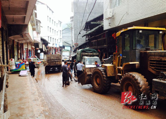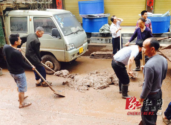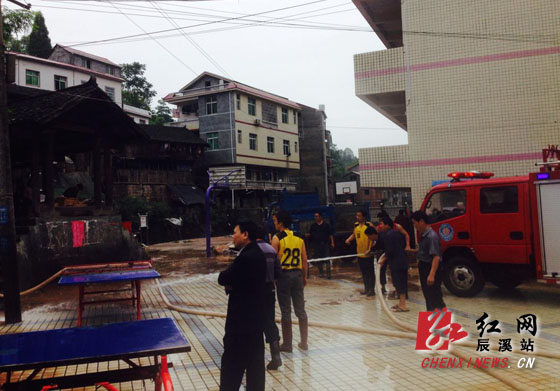 红网专题:2014湖南防汛抗旱红网辰溪站5月28日讯(分站记者 陈雍容 通讯员 谢永东)5月26日上午8时,在饱受洪灾肆虐的辰溪县大水田乡中学内,一辆消防车正配合着抽水泵在冲洗着操场内10多厘米深的淤泥。在一旁调动清淤工作的大水田乡党委书记周小平告诉记者:“灾情发生后,乡党委、政府干部积极奔赴各村组指导抗灾自救,目前受灾群众情绪平稳,各项救灾工作均在有条不紊地开展之中。”