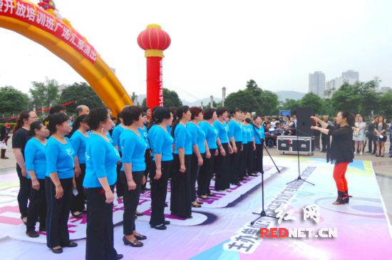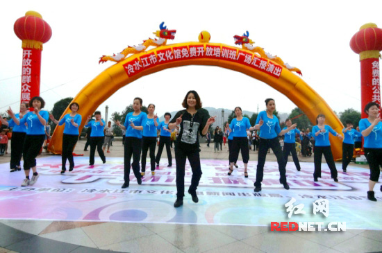 红网冷水江5月29日讯(通讯员 熊又华)5月28日,由冷水江市文化广电新闻出版局、市文化馆主办的2014年上半年免费开放成人广场舞蹈教练培训班、中老年合唱团教练培训班文艺汇报演出在市滨江公园中心广场拉开序幕。当天,100余名学员们经过近三个月的学习和排练,在冷水江市文化馆专业教师的带领下欢快地表演了一场丰富多采的节目,展示了在文化馆里学到的才艺。在广大市民观众津津乐道观赏节目的同时,并迫切要求走进文化馆,零距离体会这一公共文化事业带给他们的艺术享受。