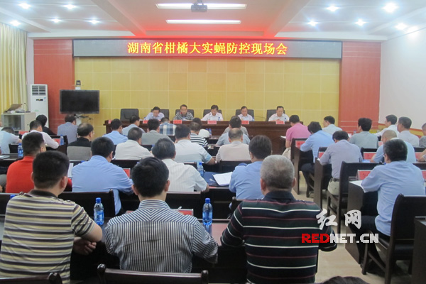 红网古丈5月29日讯(通讯员 冉红 向清敏)5月28日,由湖南省农业厅主办、古丈县人民政府承办的湖南柑橘大实蝇防控现场会在古丈召开,省农业厅副厅长李志纯,省植保植检站站长欧高财,州委常委、州人民政府副州长贾广东,古丈县委书记杨彦芳等领导出席会议,4个市(州)、24个兄弟县(市)农业局相关负责人80余人参加会议。