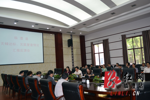 临澧副县长邓红向专家组汇报开展灭鼠灭蟑工作情况。省市专家组向临澧县反馈了考核鉴定意见,并对临澧县下一步创建国家卫生县城提出建议。