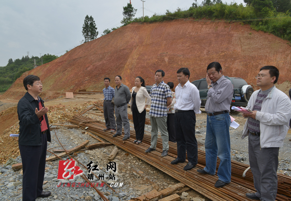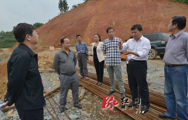 怀化市水利局副局长蒋波,靖州县副县长粟东来陪同检查。