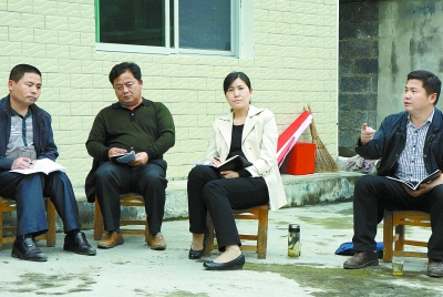 古丈县委书记杨彦芳(右二)深入产业后进村,与干部群众就精准扶贫工作进行交谈。 杨贞凤 摄