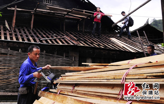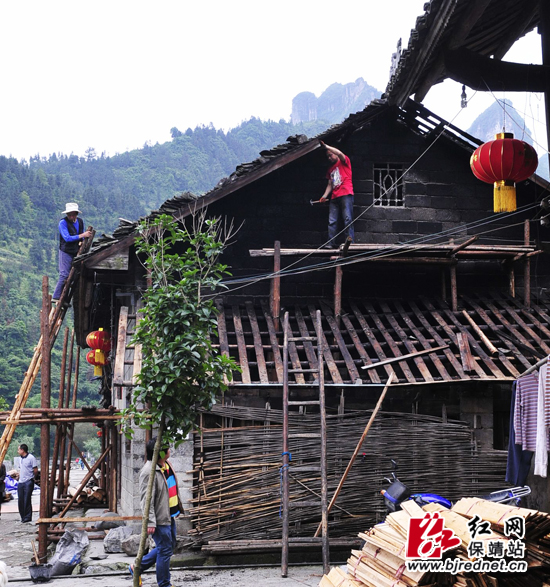 红网保靖站5月29日讯(通讯员 彭司进)5月27日,保靖县夯沙乡夯沙村特色民居保护工程启动,施工人员对首栋破旧民居换新。吕洞山升格国家3A景区后,湘西州、保靖县十分重视吕洞山景区建设,对特色民居进行保护、整修,恢复原生态苗寨,推进吕洞山旅游产业发展。来源:红网