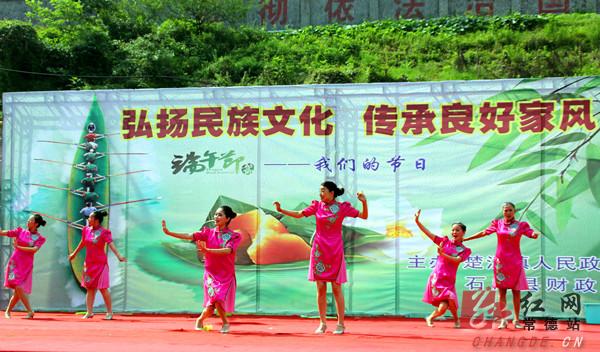 红网常德站5月30日讯(通讯员 侯雨林)由湖南省石门县楚江镇人民政府、石门县财政局联合举办的欢度我们的节日——端午节民族文化艺术展演活动,5月29日在楚江镇观山社区广场隆重举行。市委宣传部副部长李清彪、市文明办副主任贵学军及市文明办相关负责人应邀观摩展演活动。这次活动以“弘扬民族文化,传承良好家风”为主题的。各社区精心组织,选送了一批民间艺术爱好者们自编、自导、自演的优秀节目,并且内容健康丰富,紧扣民族文化和文明新风主题。并且艺术表现形式多样,有舞蹈、情景剧、鼓艺、表演唱、快板等等,演员们的精彩演技赢得观众们的阵阵喝彩和热烈掌声。包粽子大赛、端午节知识抢答、党的群众路线知识抢答、吃众子大赛等互动活动,把群众参与活动的积极性引向高潮,大大的激发了群众参与活动的积极性。