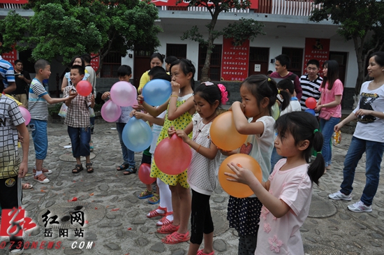 临湘市新文书店还向50名留守儿童送来了水杯、本子、笔、课外书籍等礼物,并祝福孩子们“六一”儿童节快乐。随后,主办方还组织了拔河比赛、包饺子、吃蛋糕、吹气球等活动,孩子们玩得不亦乐乎,吃得也十分开心。