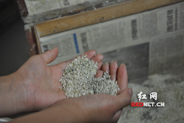 (因为暴雨和洪水,好多村民家里的存米都霉坏了。)