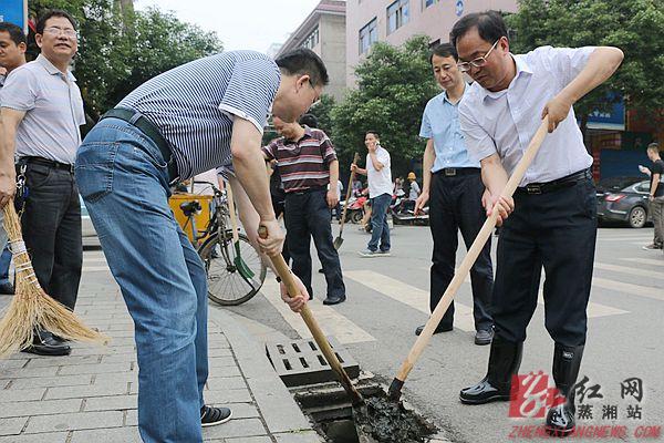 当天上午,区委书记周玉梅,区委副书记、区长林喜洋,区委副书记谢柯,区政协主席彭东阳等分别来到蒸湘街道太平片区、长湖乡立新片区、红湘街道吉祥片区等地,与乡镇街道、社区的1500多名党员干部分组实施清淤行动。大家手拿着铁锹、铁铲等清淤、清扫工具,推着手推车,不顾刺鼻难闻的臭味,迅速投入到了火热的劳动之中。