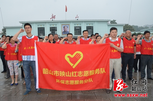 红网韶山站6月5日讯(分站记者 文丽) “韶河是我们的母亲河,为彻底改善韶河现状,我们庄严承诺——严格遵守环保法规,牢固树立环保意识,认真履行环境保护责任和义务,自觉践行简约、健康、绿色生活方式,节约资源,珍爱环境。”6月5日上午9点,环保志愿者们保护韶河的承诺誓言在火车站广场久久回荡。