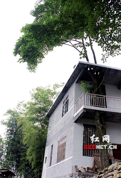 红网湘西6月8日讯(通讯员 易长松)2014年6月5日,在海拔千米的湖南省湘西土家族苗族自治州龙山县洛塔乡五台村彭家组一户农家院落中,一株郁郁葱葱、高度20米左右的桑木树,穿过一栋两层楼房的阳台,形成了一幅情趣盎然的画面。据这栋房屋的主人介绍:当初修建房屋时,为了保护原来的桑木树不受损害,在施工进行了中专门的设计和处理,使这株20米高的桑木树成为房屋的有机组成部分。