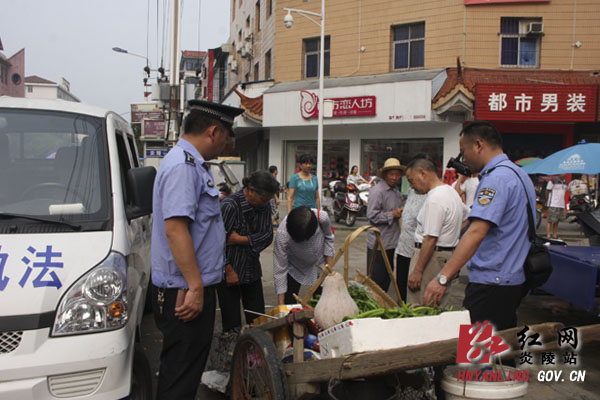 炎陵县城管局对市场周边环境卫生开展专项整治行动现场