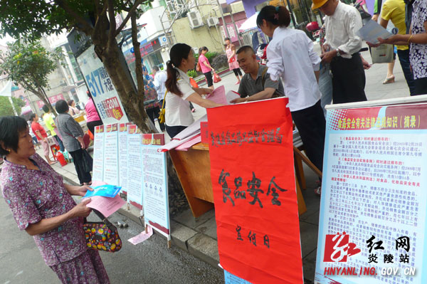 红网炎陵站6月10日讯(分站记者 彭新平 通讯员 段翔 孟滢)上午8时,以“尚德守法提升食品安全治理能力”为主题的2014年炎陵县食品安全宣传周活动启动仪式在县城步行街举行。为深入推广普及《食品安全法》等法律法规和食品安全知识,国务院食品安全委员会办公室确定6月10日至22日为今年的食品安全宣传周。在食品安全宣传周期间,炎陵县食安办联合县食药、农业、商务、工商、畜牧、粮食、卫生、质监等各个职能部门,开展现场咨询、实地观摩、在线访谈、公益讲座、有奖知识竞赛等形式多样的活动,让广大市民通过互动体验,学习了解食品安全知识,并接受市民对食品安全方面的投诉,通过多种形式的宣传教育,不断提升食品安全保障的水平,动员全社会力量参与食品安全工作。