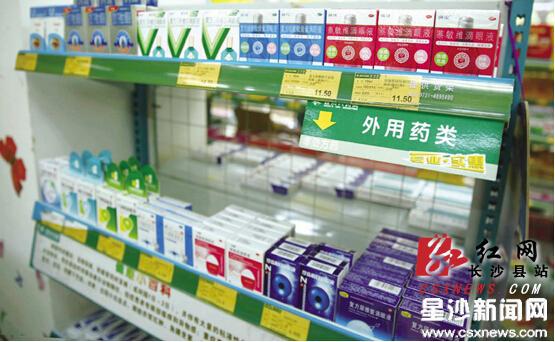许多药店内的眼药水专柜上都摆满了各种眼药水,令人眼花缭乱。 康子弘 摄