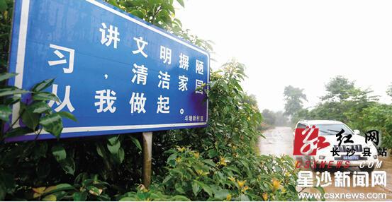 红网长沙县站6月12日讯(星沙时报记者 潘东晓 通讯员 杨宁 陈亮) “讲文明摒陋习,清洁家园从我做起。”干杉镇的不少村级道路上,每隔不远就有一块宣传环保的标语牌,提醒农村居民爱护农村环境。该镇这样的标语牌共有500余块,潜移默化中让全镇居民共同维护出良好的城乡环境。