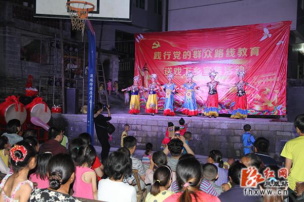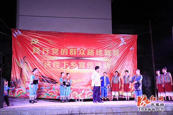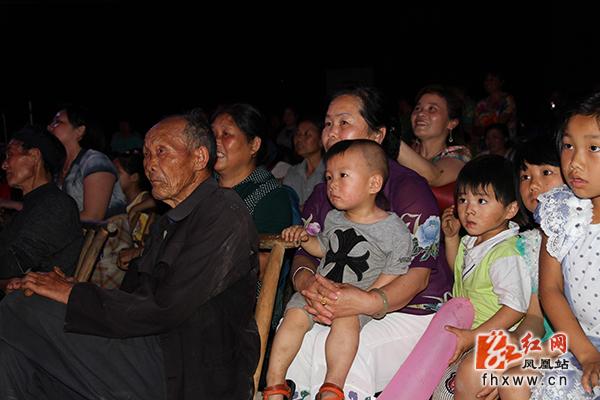 红网凤凰站6月13日讯(分站记者 吴文星)6月12日晚,凤凰县文广新局组织专业演戏队伍来到凤凰县阿拉营镇新寨村开展“送戏下乡”,积极践行党的群众路线教育实践活动。当晚,丰富多彩的文娱节目让扶贫村里的父老乡亲在家门口享受“文化大餐”,倍感温馨。来源:红网