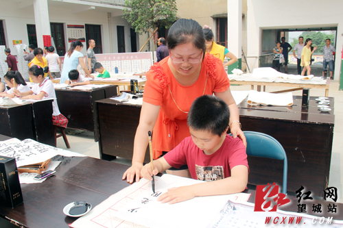 红网望城站6月16日讯(分站记者 刘赛)“我本来就喜欢书法,但是没有系统的学习过。今天知道街道举办这样的活动,我是特意带着儿子一起过来参加的,让他从小就感受国粹文化的魅力。”