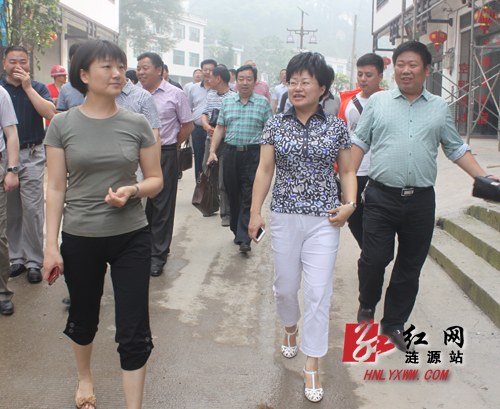 涟源市委副书记、市长谢学龙(右三),在湄江镇蒿子村调研。
