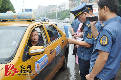 湘潭市、县联合执法整治出租车营运秩序。