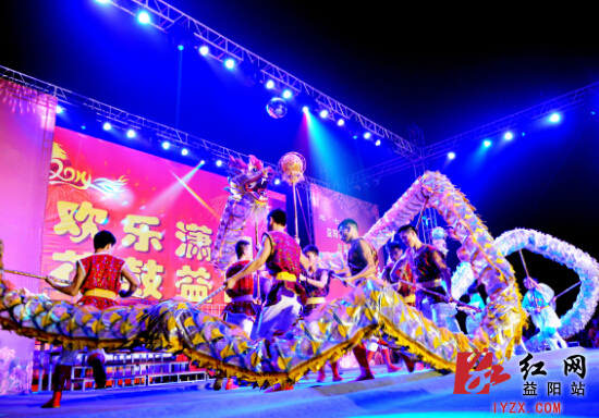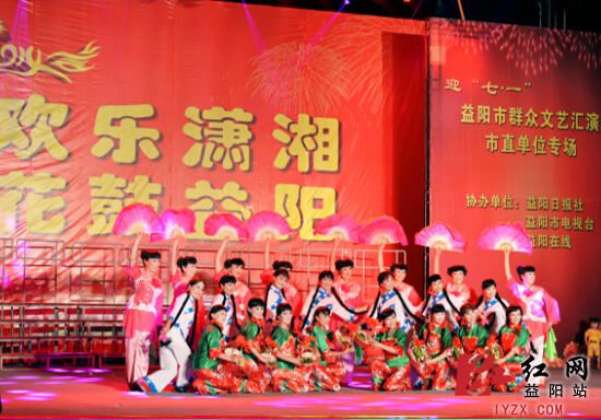 红网益阳站6月23日讯(分站记者 王玲 摄影 杨兰锋)昨晚“欢乐潇湘 花鼓益阳”益阳市群众文艺汇演在佳宁娜广场为市民送去一阵凉爽的夜风,给市民们点燃了文艺活动的热情。益阳市委常委、宣传部部长胡立安,市人大副主任刘时贵,市政协副主席梅敏亚等领导扎堆在人潮中,现场观看汇演。最具地方特色的花鼓戏,气势恢宏的合唱、热辣的肚皮舞、欢乐调皮的音乐剧等15个节目为现场的四五千观众带来了一场视觉盛宴和美的享受。据市委宣传部文艺科科长萧索透露,“欢乐潇湘花鼓益阳”系列群众文艺汇演活动共有9场,其中各区县(市)分别有一场,市直机关有一场,还有一场决赛,整个系列活动将贯穿全年。