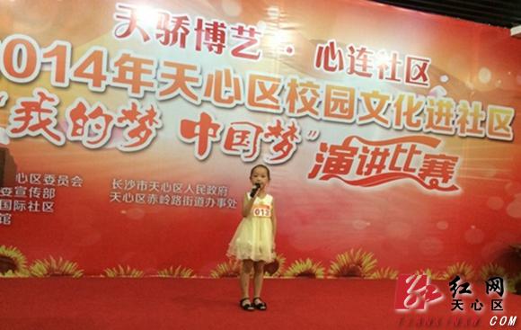 红网天心站6月23日讯(通讯员 龚细梅 龙江为)6月22日下午,长沙市天心区校园文化进社区“我的梦·中国梦”演讲比赛在赤岭路街道通用时代国际社区举行,从全区40多所大中小学层层选拔出来的22名学生参加了决赛。