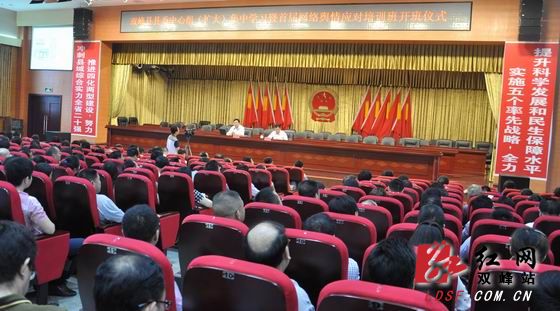 红网双峰站6月24日讯(分站记者 彭牡)6月23日,双峰县召开县委中心组(扩大)集中学习暨首届网络舆情处置培训班开班仪式。吴德华、杨维、李铁雄、朱常健、邹学耀、颜继红、刘邦文、彭云辉、黄为、龙广程等在家的县团领导参加开班仪式。培训班上,新华社新华网舆情监测分析中心主任、《网络舆情参考》总编辑段赛民,湖南省委网宣办副主任贺弘联分别作了《网络舆情研判与突发事件处置》和《认清网络发展大势提高舆论引导水平》的专题授课。