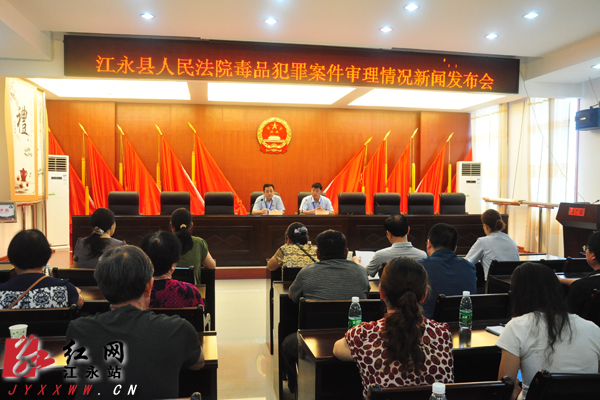 在当天上午的新闻发布会上,江永法院向邀请的部分县人大代表、政协委员及社区群众代表,通报了该院开展禁毒、审理、惩处毒品犯罪的基本情况,公布了该院审理的3件毒品犯罪典型案例。近两年来,该院共审理涉毒案件34件40人,判处五年以上有期徒刑的5人,三年以上五年以下有期徒刑的5人,三年以下有期徒刑的30人。