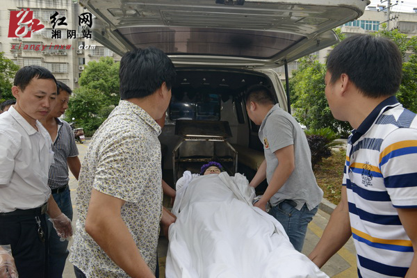 周艳家属将其遗体送上灵车