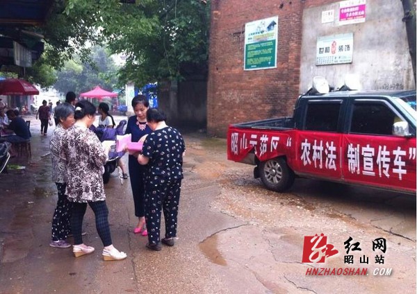 红网昭山站6月27日讯(通讯员 张萍 周磊)为深入开展2014年全市“农村法制宣传教育月”活动,稳步推进农村民主法治建设进程,突出普法的实用性、针对性、普及性,6月25日,昭山示范区综合管理部、农村经济局联合出动法制宣传车,重点深入昭山乡所辖15个行政村、易家湾镇所辖5个行政村,开展了送法下乡巡回宣传活动。此次活动以《村民委员会组织法》、《湖南省村民委员会选举办法》、《产品质量法》、《消费者权益保护法》、《治安管理处罚法》等与农村群众日常生活密切相关的法律法规为宣传重点,通过制作横幅和车载广播等宣传媒介进行宣传,营造了影响广泛、家喻户晓的法治宣传氛围,让人民群众在耳濡目染中滋生法律观念,形成法律意识。