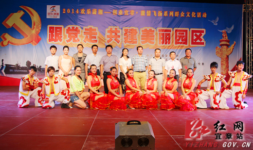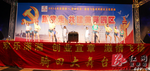 红网宜章站6月30日讯(分站记者 李云)盛夏之夜,清风徐徐。6月27日晚,宜章县经济开发区伯朗电梯大门口热闹非凡,载歌载舞。“跟党走共建美丽园区”大型晚会正在这举行,社区居民和经济开发区干部工人们享受了一顿丰盛的文化大餐。本台晚会有12个节目,很注重原创性,其中《小苹果》、《雕像下的约会》、《流浪兄弟》等节目引起观众如潮掌声,由伯朗电梯公司表演的哑剧《雕像下的约会》幽默滑稽,令在场观众捧腹大笑。婀娜多姿的舞步,气势恢宏的表演,激情飞扬的乐声……一个个经典的节目让现场高潮迭起,观众激情四溢。主持人还邀请现场观众上台游戏互动,气氛很是热闹。