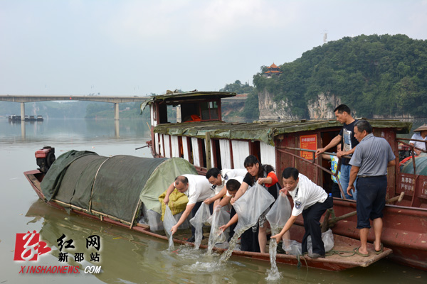 红网新邵站6月30日讯(通讯员 金叶琳)为维护资江河流天然水域水生生物资源,发展渔业生产,新邵县畜牧水产局于6月26日在资江河新邵段酿溪井港潭码头开展人工增殖放流活动,共放流草鱼、鲢鱼、鳙鱼、鲤鱼、鲫鱼等鱼苗180多万尾。来源:红网