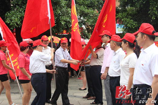 伍志平、焦能飞、莫雄等县领导,县委党建工作领导小组成员,各乡镇,各县直系统机关党委书记和组织委员,县直机关企事业单位负责人,县志愿者联合会会员代表参加授旗仪式。