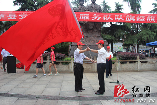 为各乡镇各系统党委授“党员志愿者服务大队队旗”