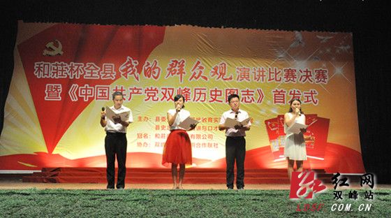 红网双峰站7月3日讯(分站记者 彭牡)7月1日晚,双峰县在县大礼堂举行和莊杯我的群众观演讲比赛决赛暨《中国共产党双峰历史图志》首发式,热烈庆祝中国共产党建党93周年。