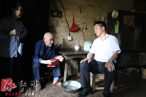 踏着泥泞的乡间小路,带着对老党员的祝愿,周志辉一行还慰问看望了茶亭镇中兴村90岁的老党员黄子忠,铜官镇花实村姚家组的老党员姚耀武,让困难老党员们感受到了组织的温暖。
