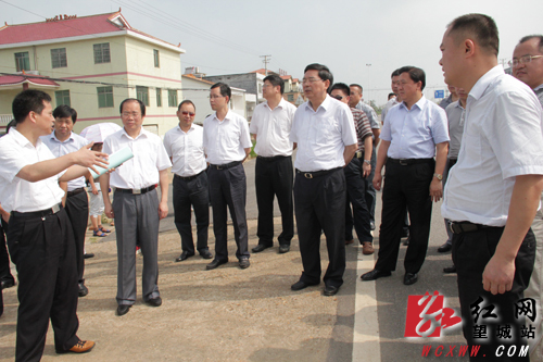 7月7日,长沙市人大常委会主任袁观清(左七)一行来望城区乔口镇踏勘了湖南省水产品一级批发市场的项目拟建地。解巾英 摄