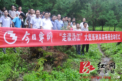 红网宁乡站7月8日讯(分站记者 刘淑兰 宋秀闺)沩江是宁乡的母亲河,历史悠久、风光秀美、人文厚重。探寻她的发源地、沿途发展变化,就是探寻宁乡的发展脉搏,触摸宁乡的心跳。7月6日,《今日宁乡》在沩江源头沩山乡沩源村举行了“走读沩江”大型系列采访报道活动启动仪式。《今日宁乡》全体干职工、沩山乡政府相关负责人、沩源村群众等参加了活动启动仪式。