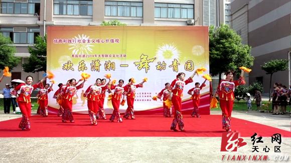 红网天心站7月9日讯(通讯员 刘诚 龚细梅 杨威)7月8日上午,“欢乐潇湘·舞动青园”——长沙天心区青园街道宣传社会主义核心价值观群众文艺展演在青园小区篮球场拉开序幕,从社区群文团队层层精选出来的文艺节目,让前来观看的大妈小孩们直呼精彩,为培育和践行社会主义核心价值观营造了良好氛围。