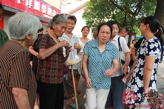 城管干部为老人买来烤饼等早点充饥,细致入微的服务让围观市民感到特别欣慰。