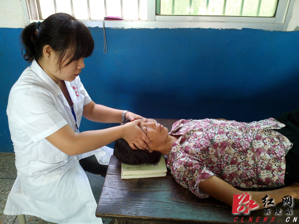 义诊组队员为村民做头面部按摩