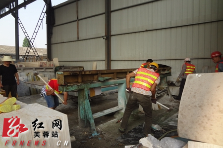 红网芙蓉站7月9日讯(通讯员 徐东)7月8日上午7点30分,长沙市芙蓉区城管、环保、公安、工商、安监、消防以及马坡岭街道、西龙村等成员单位在芙蓉区石材加工业环境污染专项整治指挥部门前集结,开展联合执法行动,依法对马坡岭街道西龙村双杨石材园内迎宾石材、腾晖石材、润华石材和新润东石材四家石材加工企业进行了取缔关闭。这四家石材加工企业长期以来从事违法生产加工石材的行为,其环保治污设施配备不到位,生产废水直排、产生的打磨粉尘和噪声等污染,对周边的居住环境造成恶劣影响,区环保局多次上门宣传劝导并下达了整改文书,但相关企业不顾劝阻,仍在进行违法生产加工。本次联合执法行动共出动职能部门执法人员和工作人员300余人,执法车辆40余辆。执法人员依法拆除四家违法企业的桥式中切锯石机、手扶抛光机、切边机、磨边机等各类石材加工设备共计24台,扣押设备3台,由马坡岭工商所出具生产设备暂扣证;同时,区环保、安监、消防、马坡岭街道及西龙村等部门对相关石材加工厂负责人和房东再次进行了宣传教育。