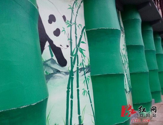 红网益阳站7月11日讯(分站记者 汤罗和子)近日,家住益阳市梓山湖小区的徐女士告诉记者,“每天进出小区门口,看到对面墙上的画,心情都会变好。”在环湖路上,一面几十米长的墙上,画满了竹子和大熊猫,大熊猫的各种“萌样”给市民留下了深刻印象。这面墙以是两栋居民楼的基柱,在没有绘画之前,光秃秃的水泥柱子显得格外刺眼。市民李先生说:“以前真的不好看,下雨还到处是黄水。”后来,也不知道哪个“做好事不留名”的部门或个人,根据基柱的形态,在这画上了熊猫和竹子。9只熊猫有的惬意地躺在竹林当中,有的在竹林玩耍,有的吃着可口的竹子,整个墙面显得生动可爱,成为了环湖路上一道靓丽的风景。