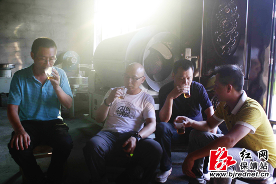 在夯吉苗寨,宾客品黄金红茶 彭运生 摄