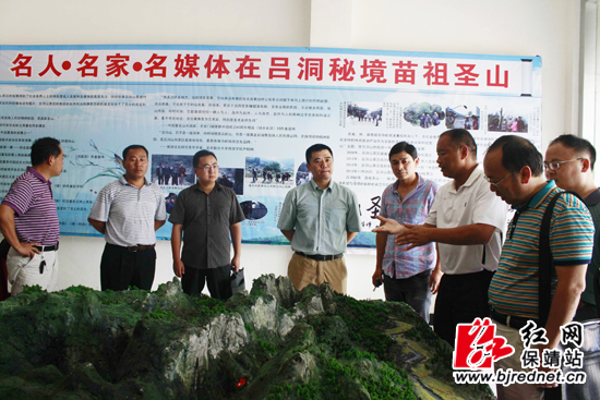结合沙盘,夯沙乡负责人向宾客讲解苗祖圣山旅游业及其特色产业情况 彭运生 摄