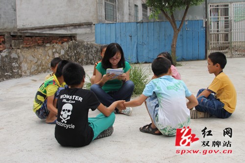 红网双牌站7月14日讯(通讯员 唐娟 黄慧萍)“村官哥哥姐姐对我们真好,每天都会陪我们讲故事、做游戏、为我们补习功课,暑假有哥哥姐姐的陪伴,我们每天都过得很开心、快乐。”来自湖南省双牌县五里牌镇中心小学学生唐小娴高兴地说。这是双牌县大学生村官倾情关爱留守儿童,开展结对帮扶活动的一个缩影。