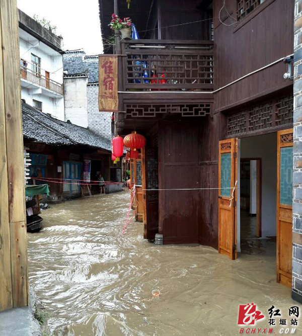 红网花垣站7月15日讯(分站记者 龙海胤 麻志胜 摄影报道)受连续降雨和上游贵州、重庆洪水影响,花垣县边城镇清水江水位猛涨。7月15日下午2点30,记者赶到边城镇时看到,幸福街两边民房已经进水一米多,最深达一米五左右。