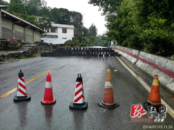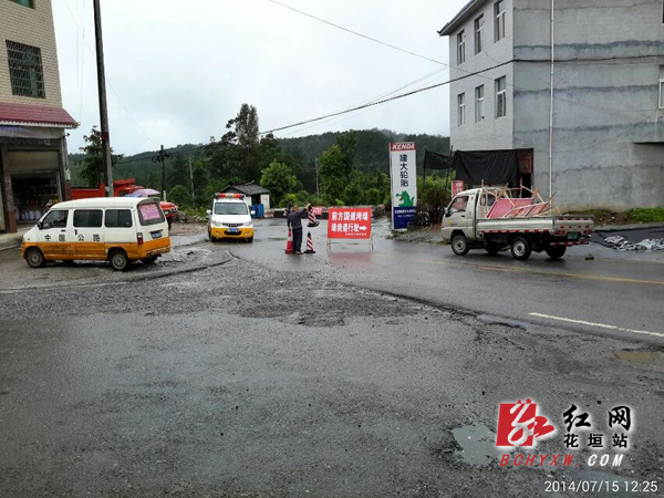 花垣县交通、公路、交警、路政和麻栗场政府联合设立警示标牌,专人值守,提醒过往车辆绕道麻栗场的街道行驶或走吉茶高速。