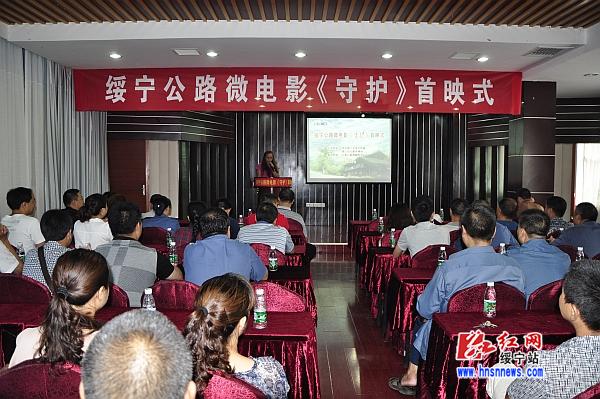 红网绥宁站7月15日讯(分站记者 黄生勇 通讯员 龙清泉)7月15日,由湖南省绥宁县公路管理局与七彩石影视制作中心联合摄制的微电影《守护》举行首映式。这标志着湖南公路系统的首部微电影正式诞生。《守护》是以绥宁县公路局荣获“全国最美养路工”、“全国五一劳动奖章”、“湖南省劳动模范”等众多荣誉为一身的养路工人龙运跃同志为原型,经过艺术加工创作的首部微电影。它用其平凡生动的事迹一方面展现了公路人默默无闻、顽强拼搏、敢于担当、守护公路的奉献精神,另一方面描绘了公路人向往幸福生活,守护爱情的美好愿景。