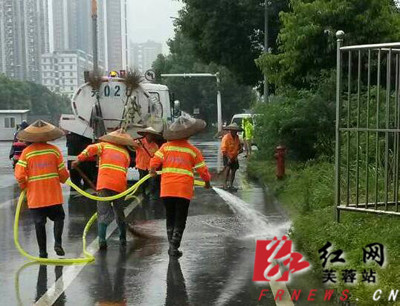 加大道路强冲力度。投入7台10吨大水车,对全区道路实行强冲作业,在五一路、韶山路、芙蓉路、八一路、晚报大道、车站路六条重点路段实行双车作业模式,即前车直向冲洗路面泥沙,后车横向将泥沙冲至路边沟收尾,降低一线工人作业强度。