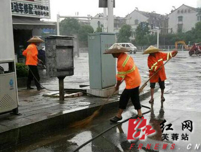 红网芙蓉站7月15日讯(通讯员 龙洪波)7月12日起,新一轮强降雨“空袭”长沙,为积极应对恶劣天气,维护全区环境卫生整体质量,保障一线职工作业安全和环卫设施正常运转,长沙市芙蓉区环卫局迅速启动应急预案,多措并举、科学有序的组织防汛防涝工作。紧急成立领导机构。第一时间成立由梁卫局长任组长、班子成员任副组长、全局各作业单位负责人为成员的“应对强降雨天气”工作领导小组,统一调度和指挥应对强降雨天气各项工作。
