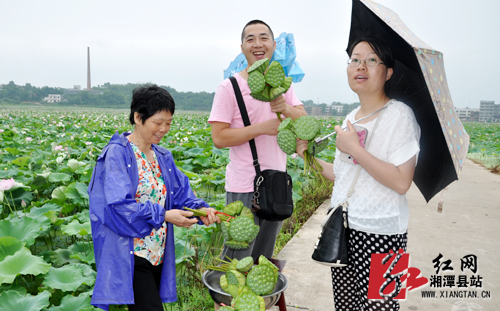 红网湘潭县站7月16日讯(分站记者 旷颖)7月13日,湘潭县“赏荷之旅”一日游在花石启动,团客、自驾游客、骑友“热闹”了这座古镇。当天,零星的夏雨中荷花灵动娇美,莲农刚采摘来的莲蓬颗粒饱满沁甜,从城中来的游客们脱下鞋子,走上田埂,与莲合影,他们笑着告诉我们,这才是自然,这才是原生态,这才是生活该有的模样。