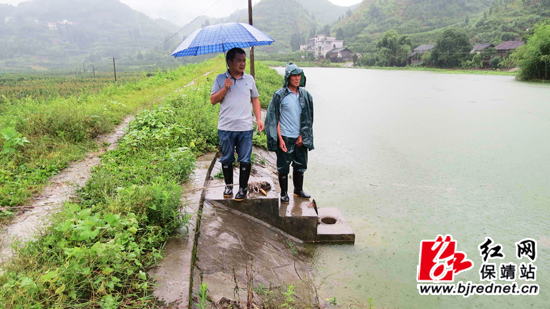 比耳镇镇长胡明察看他不洞山塘的排洪泄洪情况